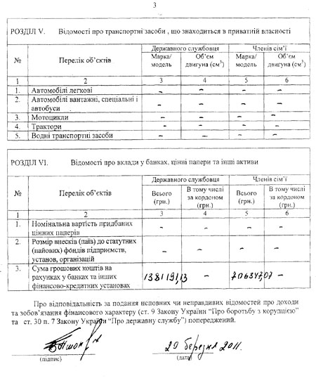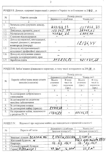 В частности, как отмечается в документе, из этих средств 153 тысячи - дивиденды, проценты, роялти, 45 тысяч - материальная помощь; 303 тысячи - зарплата. Происхождение других 350 тысяч гривен не указывается.