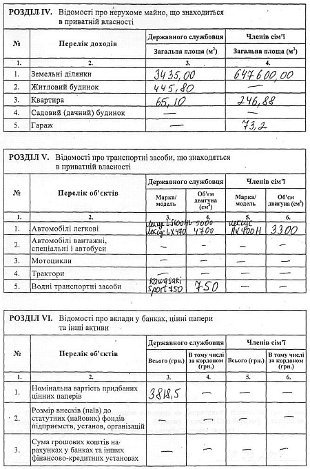 На содержание имущества депутат потратил 15 тысяч гривен, а его семья - 13,75 тысяч гривен. Кроме того, семья по договорам найма заплатила 252 тысячи гривен.