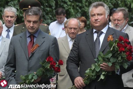 Посол России в Украине Михаил Зурабов, вместе с экс-регионалом Олегом Калашниковым, возложил цветы к Вечному огню.