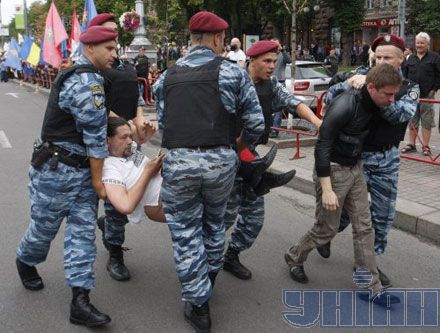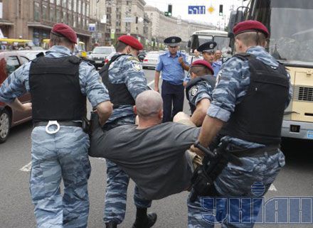 Вместе с тем, на Крещатике во время блокирования милицией митинга сторонников лидера "Батькивщины" Юлии Тимошенко произошло столкновение между милиционерами и депутатом Киевсовета от "БЮТ-Батькивщины" Александром Бригинцом.