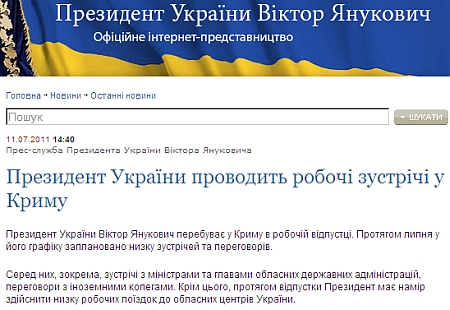 Ранее неназванный источник сообщил, что Янукович ушел в отпуск и часть его проведет в Крыму.