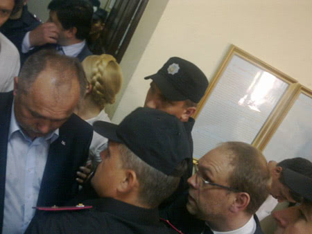 Когда защитники Тимошенко пытались попасть в зал суда, между ними и спецподразделением Грифон произошла ссора.