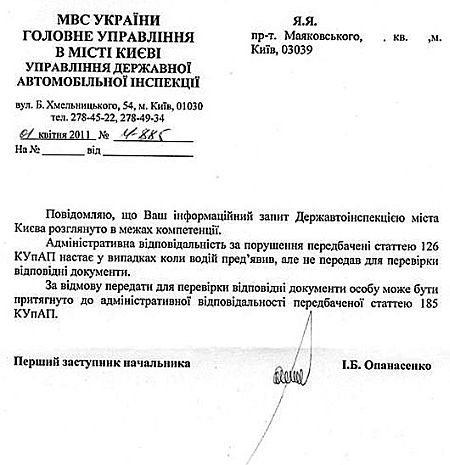 Об этом свидетельствует ответ управления ГАИ Киева на запрос издания "Дорожный контроль".