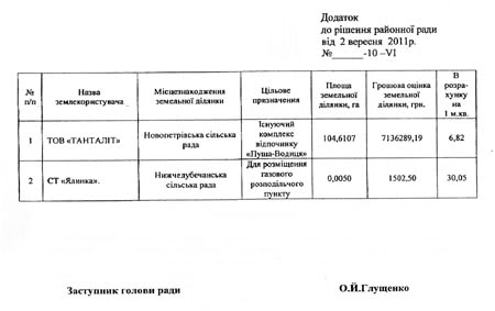Своим решением районный совет утвердил нормативную оценку земельного участка площадью 105 гектаров в "Межигорье" в размере 7 миллионов 136 тысяч гривен.