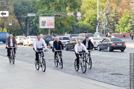 Как сообщают в областной администрации, отказались от автотранспорта и прибыли на работу на велосипедах также губернатор Харькова Михаил Добкин, его заместитель Евгений Савин и заместитель главы области - руководитель аппарата администрации Василий Хома.