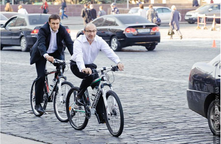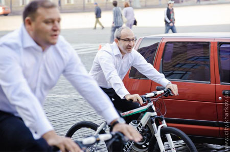 Кернес и Добкин показательно пересели с иномарок на велосипеды