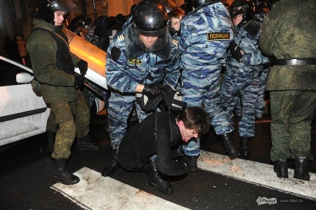 Полиция достаточно жестко пресекала попытки продолжения шествия, был перекрыт проезд по Большой Лубянке, даже девушкам при задержании выкручивают руки.