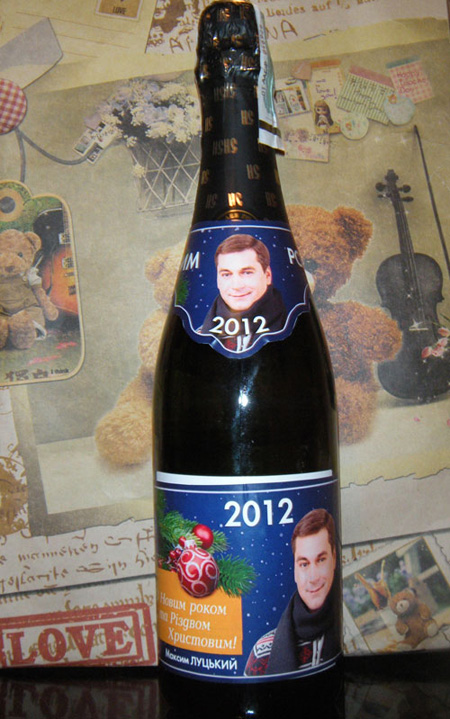 Депутат от Партии регионов Максим Луцкий продолжает агитацию киевлян, раздавая им шампанское со своим портретом.