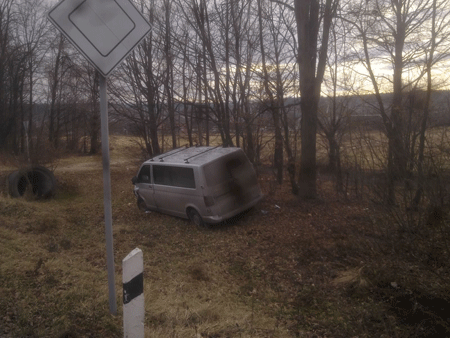 | Микроавтобус, который вылетел в кювет |