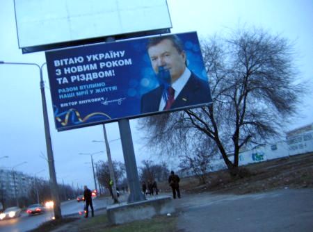 5 января сообщалось, что во Львове неизвестные забросали синей краской биллборд с новогодним поздравлением Януковича. Львовская милиция возбудила уголовное дело по этому факту.