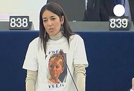 Вместе с другими европарламентариями она появилась в сессионном зале в футболке с надписью "Free Yulia" ("Освободите Юлию").