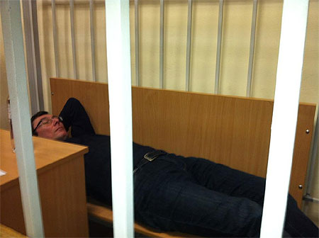 На реплику о том, что журналисты видели Луценко, который лежал на скамье в клетке, Лобан ответил, что "присутствующие в зале СМИ видели, как нардеп Арьев достал свой телефон с фотокамерой, попросил Луценко лечь на лавку, сфотографировал его, а затем Луценко со скамейки встал, и лежал он там только те 5 секунд после Арьев делал это фото ".