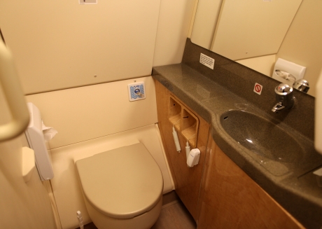 В самолете нет стеклянных зеркал - их функцию по нормам авиабезопасности выполняют отполированные до зеркального блеска тонкие металлические пластины. Это - одно из международных требований из авиабезопасности.