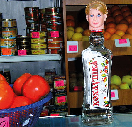 В российских продовольственных магазинах появилась водка "Хохлушка" с резиновой крышкой, исполненной в виде головы Юлии Тимошенко.