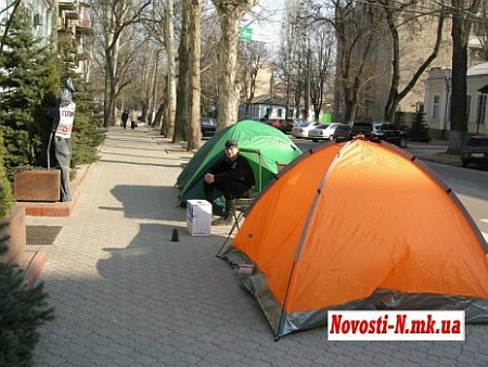 Возле здания Николаевской облпрокуратуры протестующие установили две палатки.