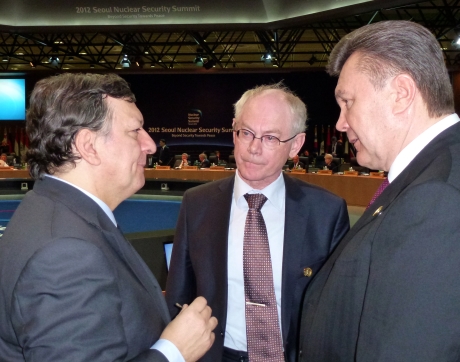 Президент Виктор Янукович во вторник в Корее встретился с председателем Европейского совета Херманом ван Ромпеем и председателем Еврокомиссии Жозе Мануэлем Баррозу.