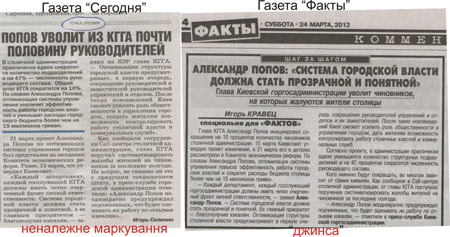 Две ежедневные газеты "Факты" и "Сегодня" 24 марта разместили в субботних номерах идентичные материалы о председателя Киевской городской госадминистрации Александра Попова.