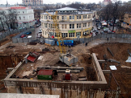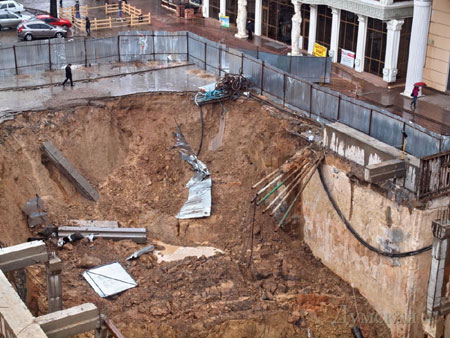В центре Одессы на Греческой площади на месте строительства подземного паркинга произошел обвал.