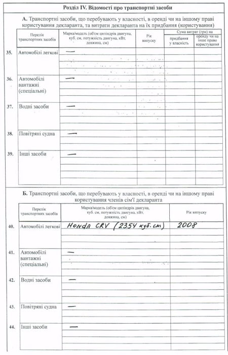 Члены семьи Шевченко владеют автомобилем Honda CRV объемом двигателя 2354 куб.см.