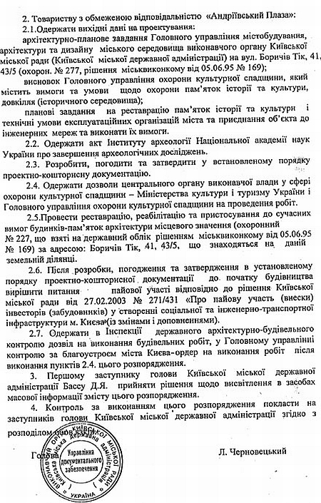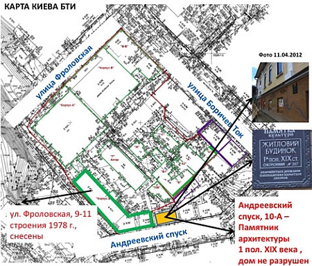 "Официальные данные из бюро технической инвентаризации (БТИ) и реестр культурного наследия Киевсовета это подтверждают. На площадке Андреевского спуска подлежащих реконструкции объектов, не имеющих исторической ценности. Частности, это дом 70-х годов постройки в аварийном состоянии на углу ул. Андреевский спуск и ул. Фроловская", говорится в сообщении.