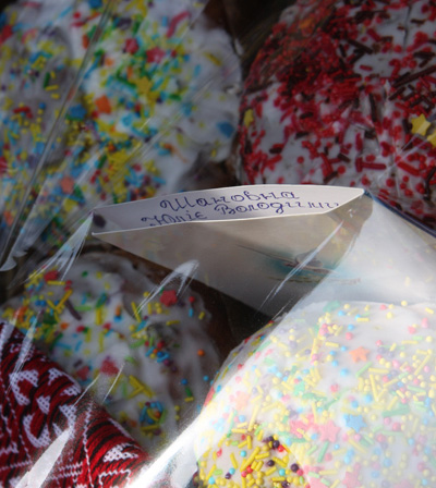 Кроме того, представители Харьковской "Батькивщины" передали персональную корзину с пасхальными куличами для лидера оппозиции Юлии Тимошенко.