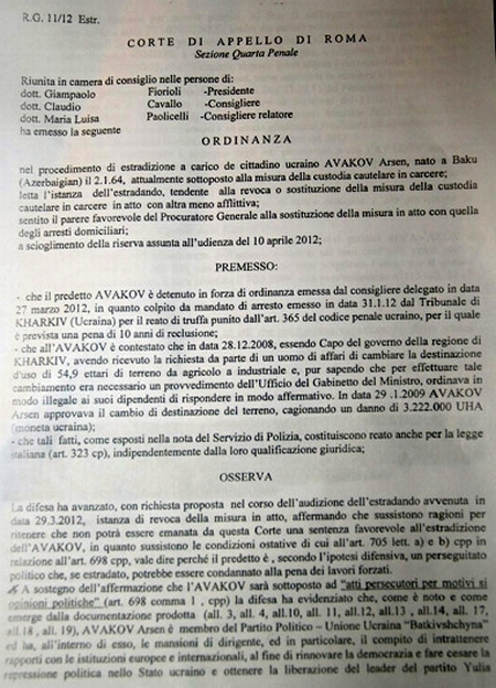 Адвокат также процитировал резолютивную часть решения Римского суда: "Суд отзывает меру пресечения содержание под стражей, которая была применена к Авакову Арсену, личные данные которого указаны выше, постановив его освободить, если он не заключен по другому делу".
