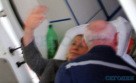 Когда Тимошенко вынесли на носилках из здания больницы, одной из сторонниц удалось пробраться мимо правоохранителей и даже обняться с экс-премьером. После этого Тимошенко погрузили в карету скорой и увезли обратно в колонию.