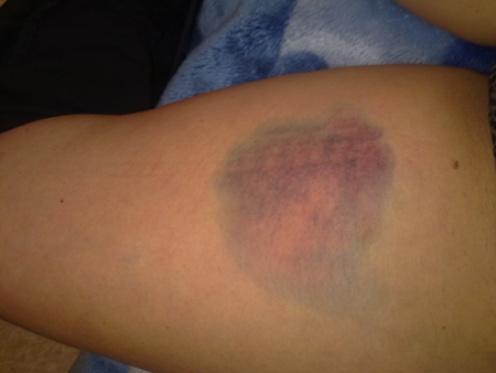 | На фото четко видно гематому от удара |