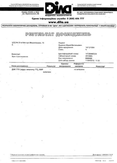 Соответствующие результаты медицинских исследований, сделанных в больнице скорой помощи в апреле, он опубликовал в своем блоге на "Украинской правде".