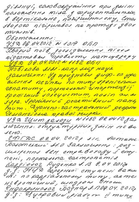 В документе перечислены обнаруженные у Луценко болезни, в частности также гемангиома правой почки и сахарный диабет II типа.