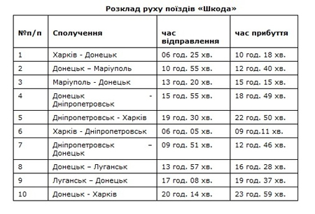 | Расписание елекропоиздив Skoda |