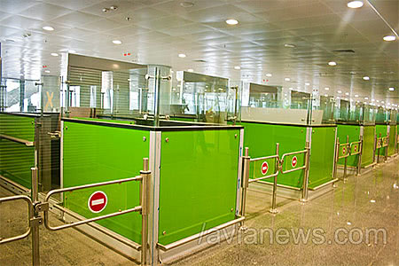 В зоне отправления нового аэровокзального комплекса – 61 стойка регистрации, 18 пунктов контроля за авиационной безопасностью, 28 кабин паспортного контроля.