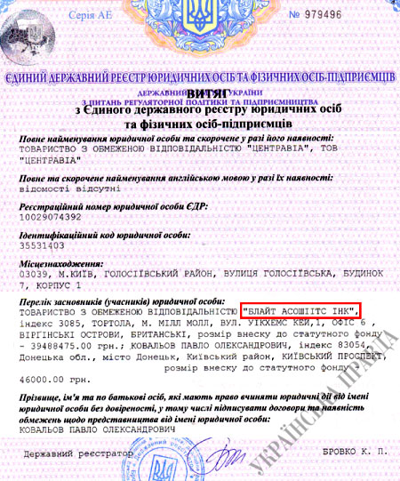 Как известно, главным основателем ООО "Центравиа" является фирма BLYTHE Associates Inc., которой принадлежит 99,9% акций авиационной компании. Эта фирма зарегистрирована в оффшорной зоне - на Британских Виргинских островах.