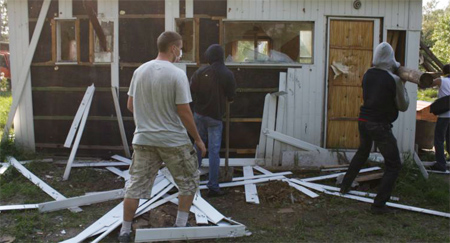 Они начали разрушать ограждение, строительные вагончики и строительство. Строители отошли в сторону и им не мешали. Молодые люди скандировали "Верните нам парк!", а когда на место прибыли правоохранители, скрылись с места происшествия. Вскоре одного из них задержала милиция.