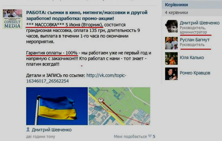 Так, на одном из Одесских форумов появилось объявление для желающих подзаработать, приняв участие в митинге в Киеве под Верховной Радой.