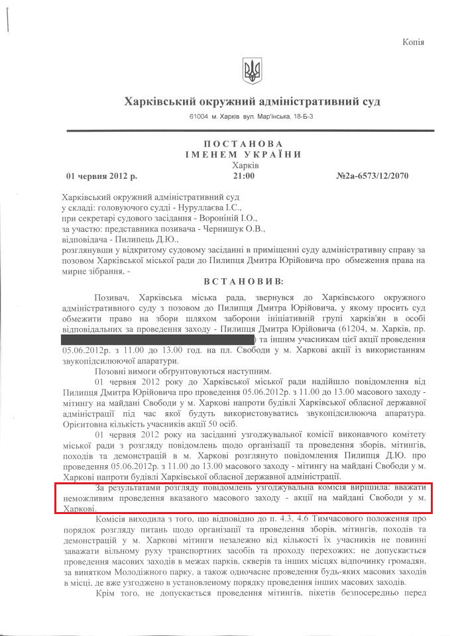 Окружной апелляционный суд Харьковской области запретил двум группам граждан проводить разнесенные во времени и пространстве акции в защиту украинского языка 5 июня.