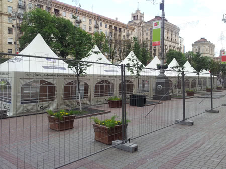 Так, на Крещатике уже появился двухметровый забор.