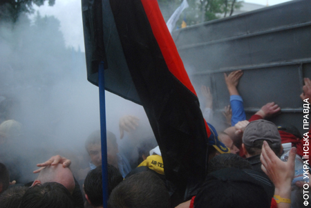 Как известно, корреспондент "Украинской правды" видел, как во время стычки под Верховной Радой со стороны милиции было применено вещество, которое образовало серое облако, после чего у людей покраснели, опухли и слезились глаза.