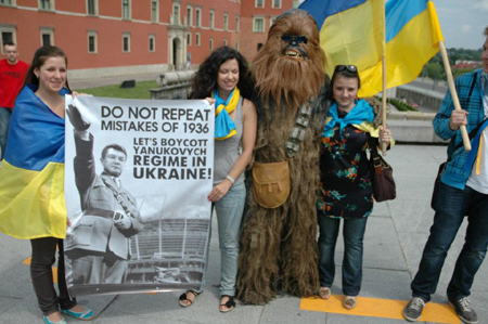 В Варшаве на акцию против диктатуры пришел Чуббака из "Звездных войн"