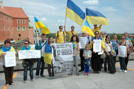 Украинцы Варшавы организовали акцию против диктатуры в Украине в день открытия Евро-2012, 8 июня.