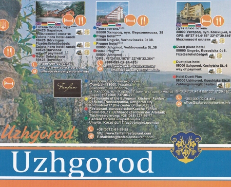 В буклете размещена также реклама ужгородского отеля "Европа" (принадлежит семье бывшего силовика), однако на странице с учреждениями питания.