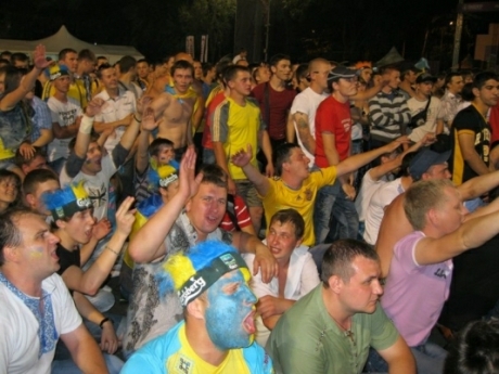 | фан-зона в Донецке празднует победу украинской сборной. фото "Газеты по-украински" |