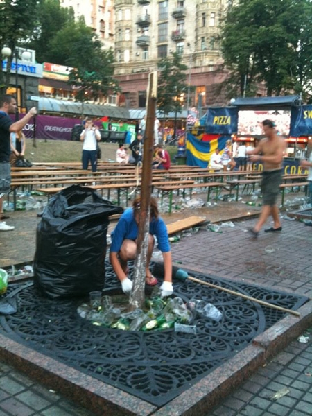 Дерево на Крещатике пострадало от украинца, после матча было все спокойно
