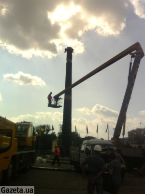 На площади Розы Люксембург в Харькове был демонтирован памятник Независимости.