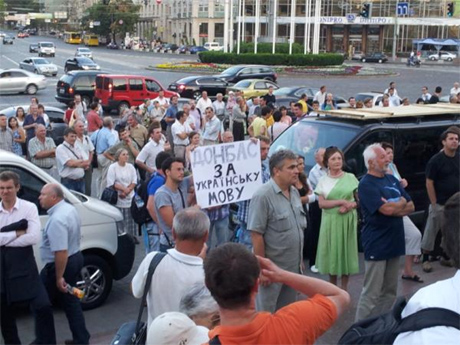 Акция протеста под Украинским домом против "языкового" закона Колесниченко пережила вторую ночь.