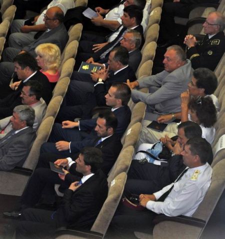 В зале присутствует много известных людей, народные депутаты Украины, губернаторы Донецкой и Луганской областей, мэры городов Донецкой области.