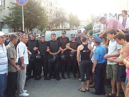 На просьбу народных депутатов Юрия Стеця и Олеся Дония отойти правоохранители хамили.