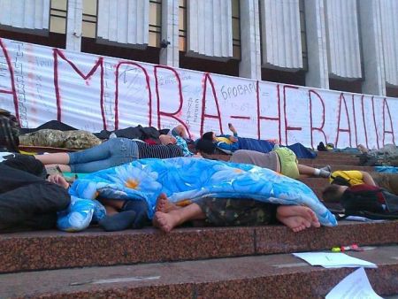 Как известно, после того как депутаты от оппозиции прекратили голодовку в знак протеста против принятия "языкового закона" и объявили об окончании акции протеста, пятеро представителей общественности с этим не согласились, остались под Укрдомом и объявили голодовку.