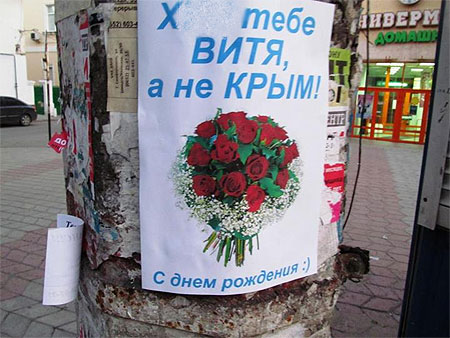 В Киеве Януковича поздравили плакатами с Каддафи, а в Крыму - нецензурщиной