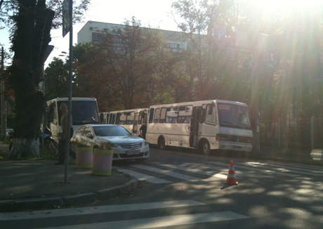 Так же 4 автобуса спецподразделения Беркут стоят на Виноградном переулке и еще три - на улице Богомольца.